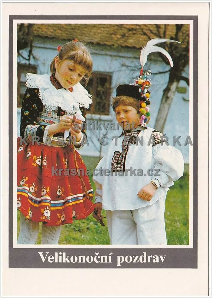 DĚTI v kroji na velikonočním přání