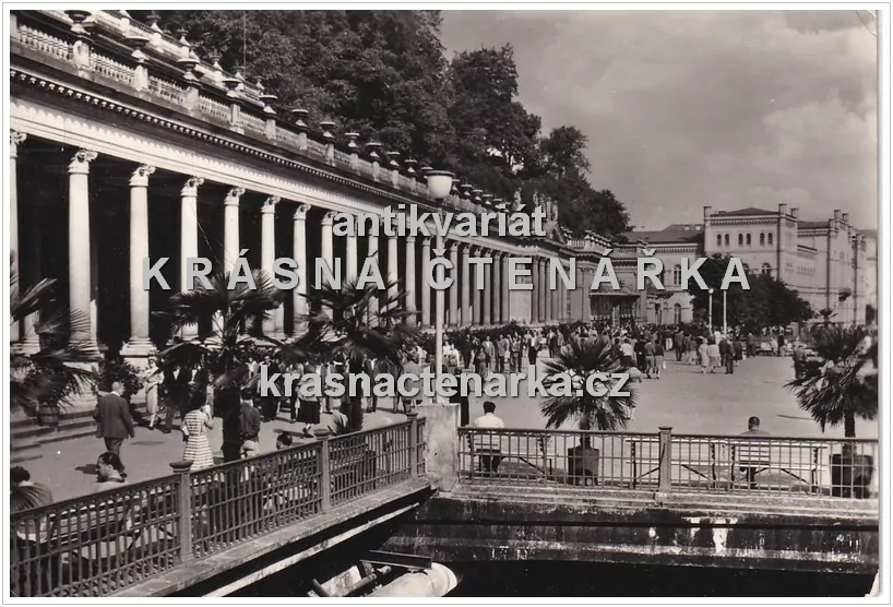 KARLOVY VARY Kolonáda československo-sovětského přátelství, "před i po" zvaná Mlýnská kolonáda . Stav: Zachovalý Stav pohlednice či fotografie je viditelný v náhledu. Z hlavní náhledové fotografie je vidět případné zohýbání, propíchnutí, natržení, flíčky či jiné vady. V náhledu druhé, u pohledn... celý popis