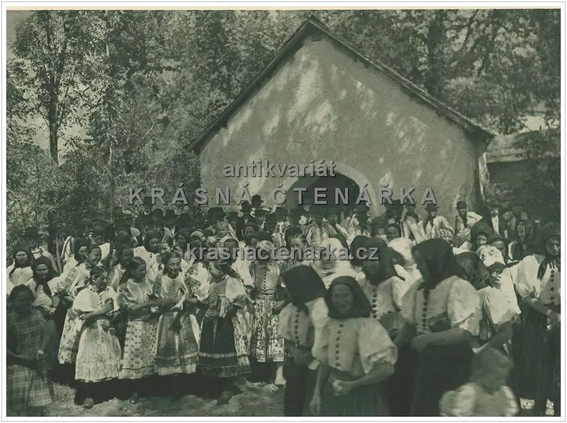 (dle textu je na fotografii oslava nedělního svátku před kostelem v Sucháni u Dačova)