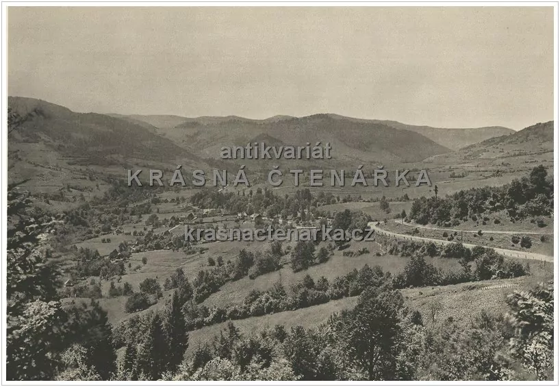 Reprodukce fotografie + list s textem, 2 volné listy z publikace "Naše hory".