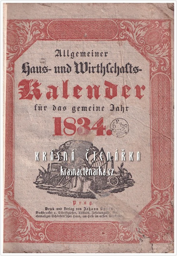 - Allgemeiner HAUS- UND WIRTHSCHAFTS- KALENDER für das gemeine Jahr 1834, Nakladatelství Johann Spurný, Praha