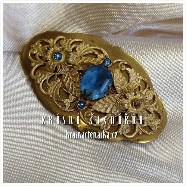 Bižuterní BROŽ s modrými šatony, cca 1920Skladem250 Kč/ ks