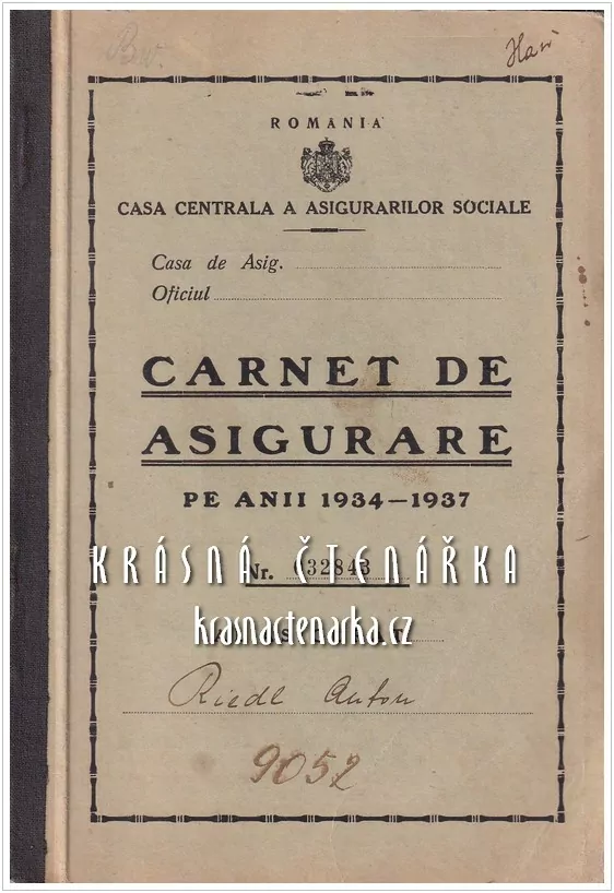 CARNET DE ASIGURARE pe Anii 1934-1937, Casa Centrala a Asigurarilor Sociale, RomaniaSkladem150 Kč/ ks