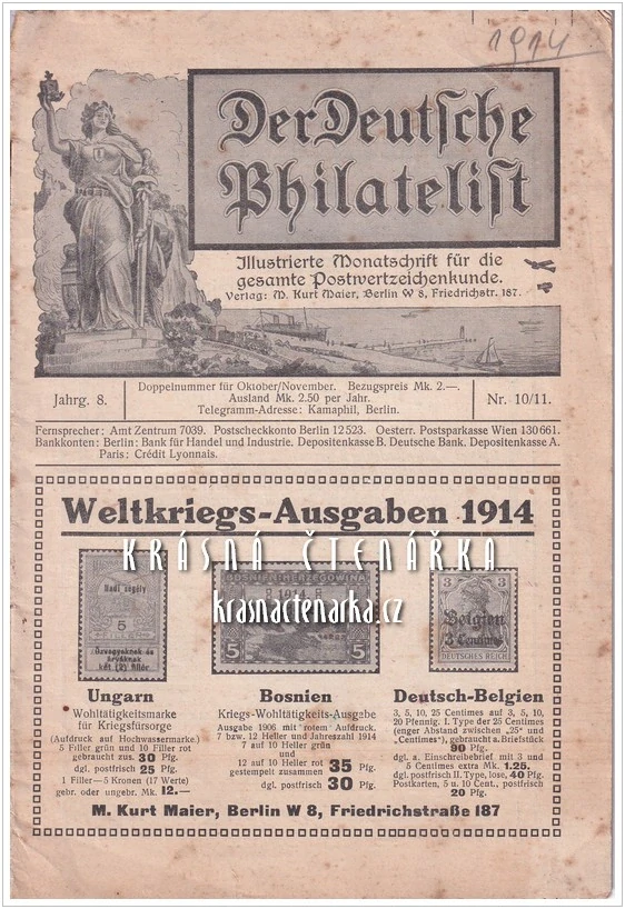 DER DEUTSCHE PHILATELIST, Illustrierte Monatschrift für die gesamte Postwertzeichenkunde 1914/10-11Skladem100 Kč/ ks