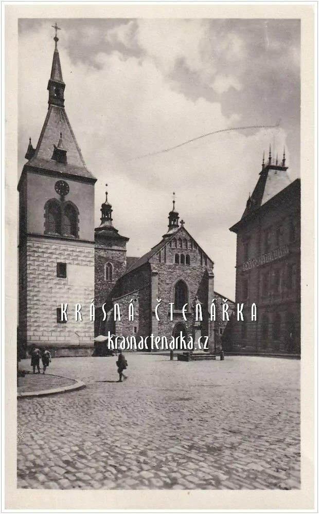 - KOUŘIM, Pohled na kostel sv. Štěpána a Občanskou záložnu