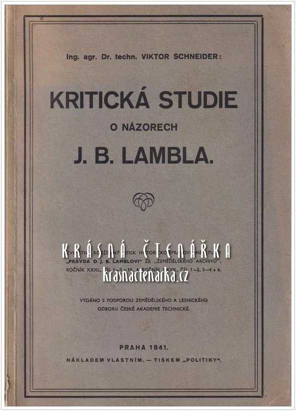 - KRITICKÁ STUDIE O NÁZORECH J. B. LAMBLA (Schneider Viktor)