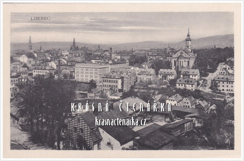 LIBEREC, Střed města a pohled na evangelický kostel