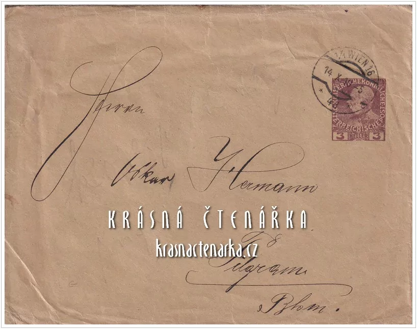 - OBÁLKA či DOPISNICE Z ROKU 1910 s vytištěnou známkou, RAZÍTKO wien