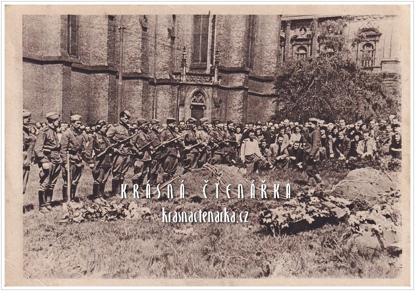 OSVOBOZENÍ PRAHY 1945, Pohřeb padlých ruských vojínů u kostela sv. LudmilySkladem40 Kč/ ks