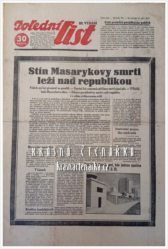 - POLEDNÍ LIST 1937/256 (Úmrtí T. G. Masaryka)