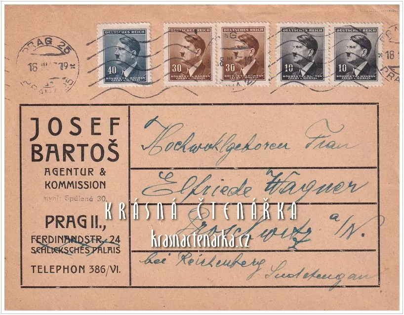 4. POŠTOVNÍ ZNÁMKA na obálce, PROTEKTORÁT Čechy a Morava