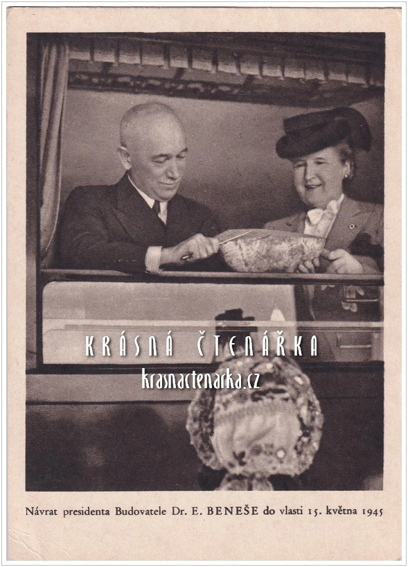 PRAHA, Osvobození Prahy 1945, Prezident Beneš s chotí po příjezduSkladem50 Kč/ ks