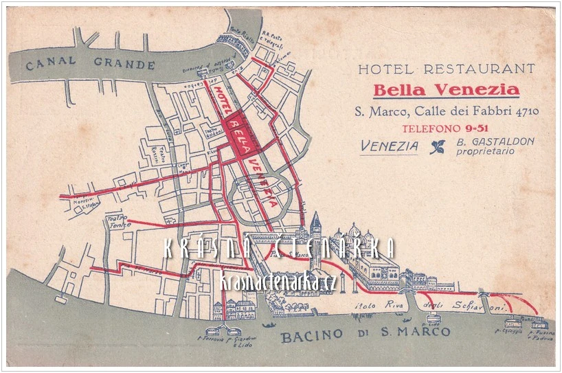 REKLAMNÍ pohlednice: Hotel restaurant BELLA VENEZIA, Venezia