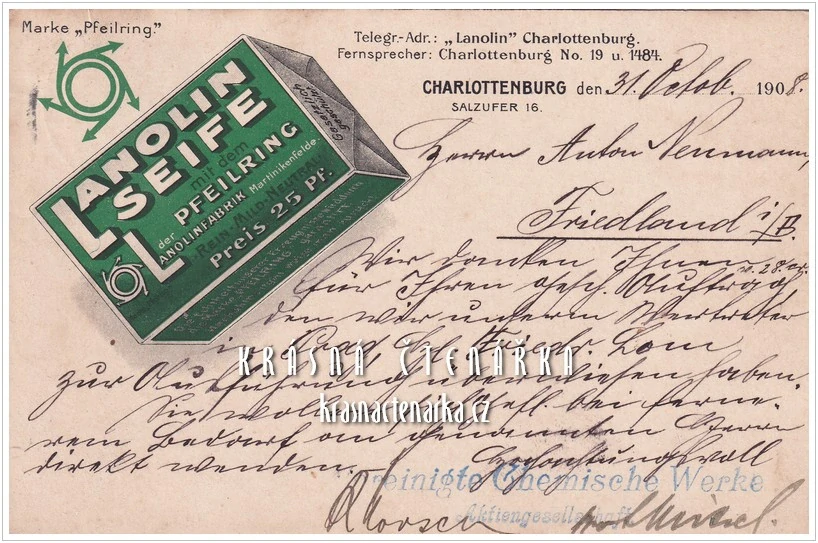 - REKLAMNÍ pohlednice: LANOLIN SEIFE, Charlottenburg