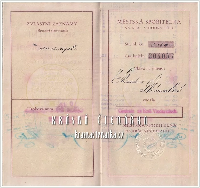 - SPOŘITELNÍ KNÍŽKA Městské spořitelny na Král. Vinohradech, Praha