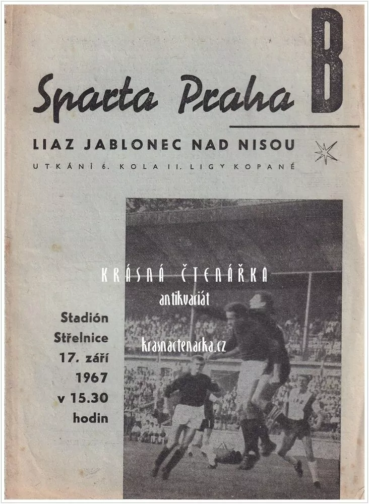 Sportovní program: SPARTA PRAHA - LIAZ JABLONEC NAD NISOU, Stadión Střelnice 17. září 1967
