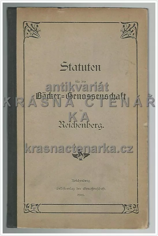 STATUTEN FÜR DIE BÄCKER=GENOSSENSCHAFT IN REICHENBERG (Stanovy pro pekařská družstva v Liberci)Skladem150 Kč/ ks