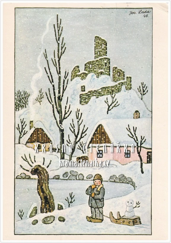 VÁNOČNÍ a NOVOROČNÍ pohlednice Ilustrátor: Lada Josef Stav: Zachovalý (omšelé) Stav pohlednice či fotografie je viditelný v náhledu. Z hlavní náhledové fotografie je vidět případné zohýbání, propíchnutí, natržení, flíčky či jiné vady. V náhledu druhé, u pohlednice adresní strany, je vidět stav ok... celý popis
