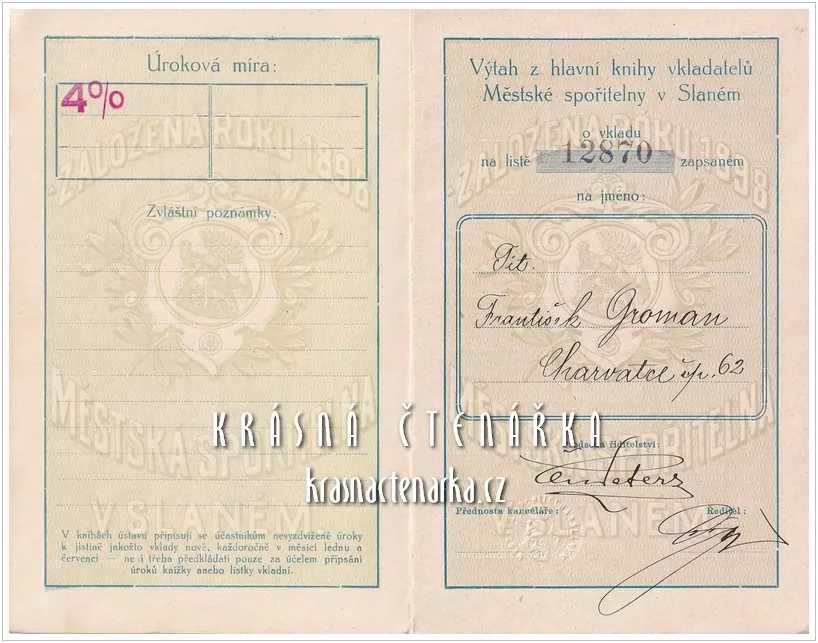 VKLADNÍ LIST Městké spořitelny ve Slaném