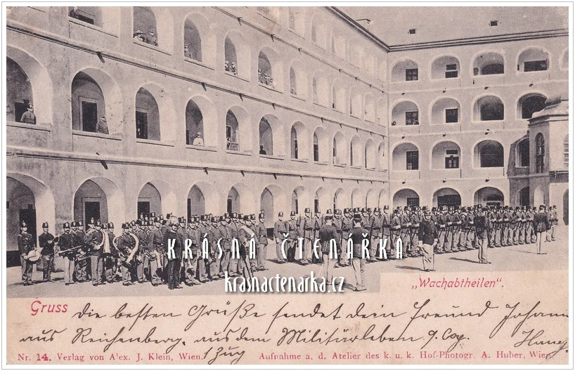 VOJENSKÁ, Shromáždění vojenské jednotky s hudbou na nádvoří kasárenSkladem180 Kč/ ks
